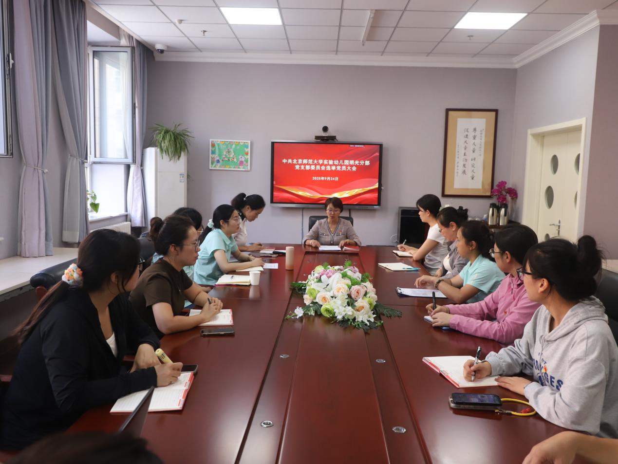 2025年9月24日,中共北京师范大学实验幼儿园明光分部党支部委员选举党员大会在明光分部北楼会议室召开,中共北京师范大学实验幼儿园党委组织员李平平列席参会,明光分部12名党员同志现场参会。