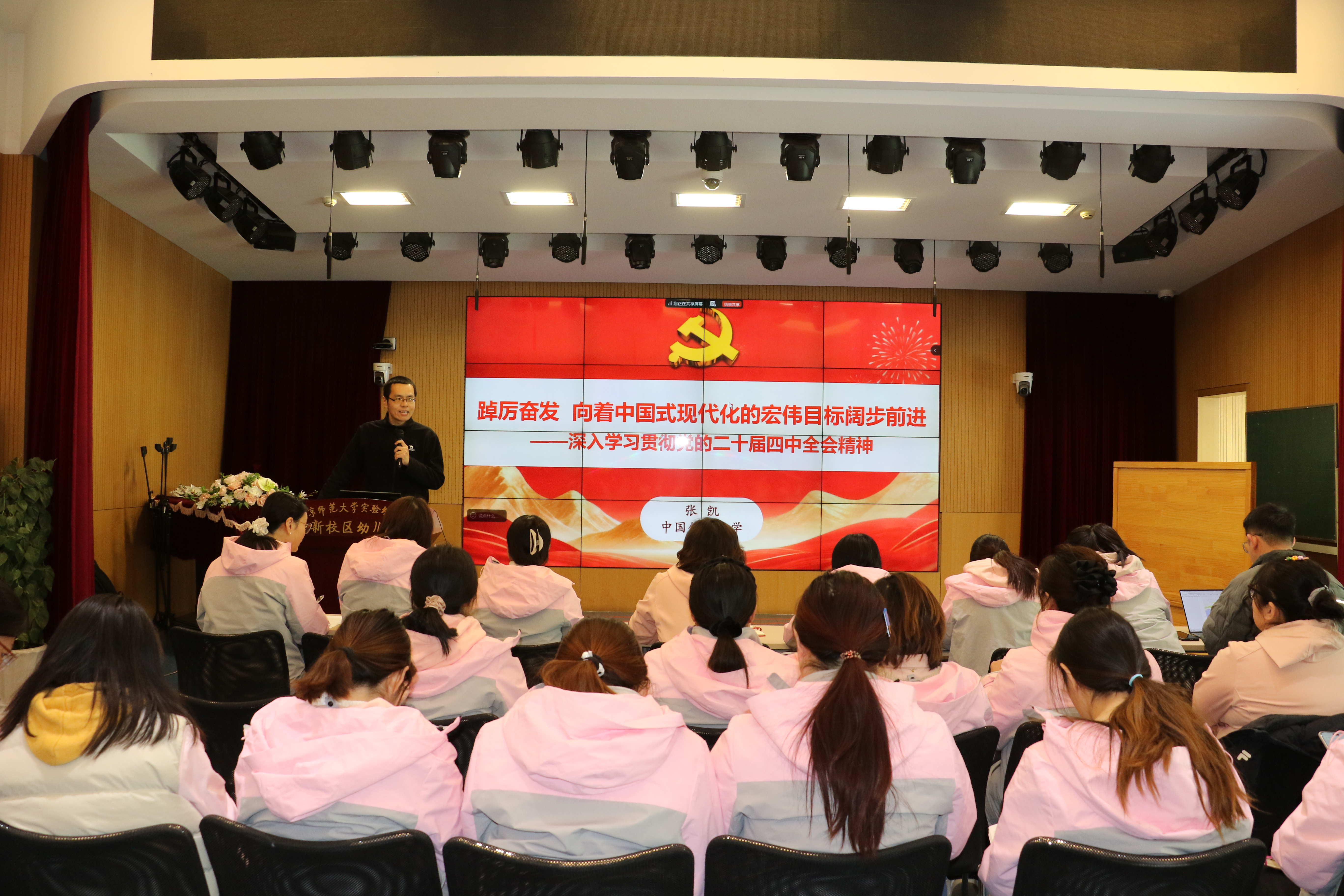 张凯副教授从历史逻辑、理论逻辑、实践逻辑三个维度,梳理了从“一五”计划到“十五五”规划的发展脉络,阐明制定中长期规划指导经济社会发展是我们党治国理政的重要方式。重点阐释“十四五”时期我国发展取得的重大成就、“十五五”时期经济社会发展的重大意义、党中央对国内外形势的基本判断,以及“十五五”时期经济社会发展的指导思想、重大原则、主要目标、战略任务、重大举措和根本保证,从而明确贯彻落实全会精神需要着重把握的重点。他结合学前教育在国民教育体系中的基础作用,从“培育时代新人”的角度,讲解如何将全会精神融入学前教育工作,鼓励年轻教师们勇担时代教育使命,为建设教育强国踔厉奋发。