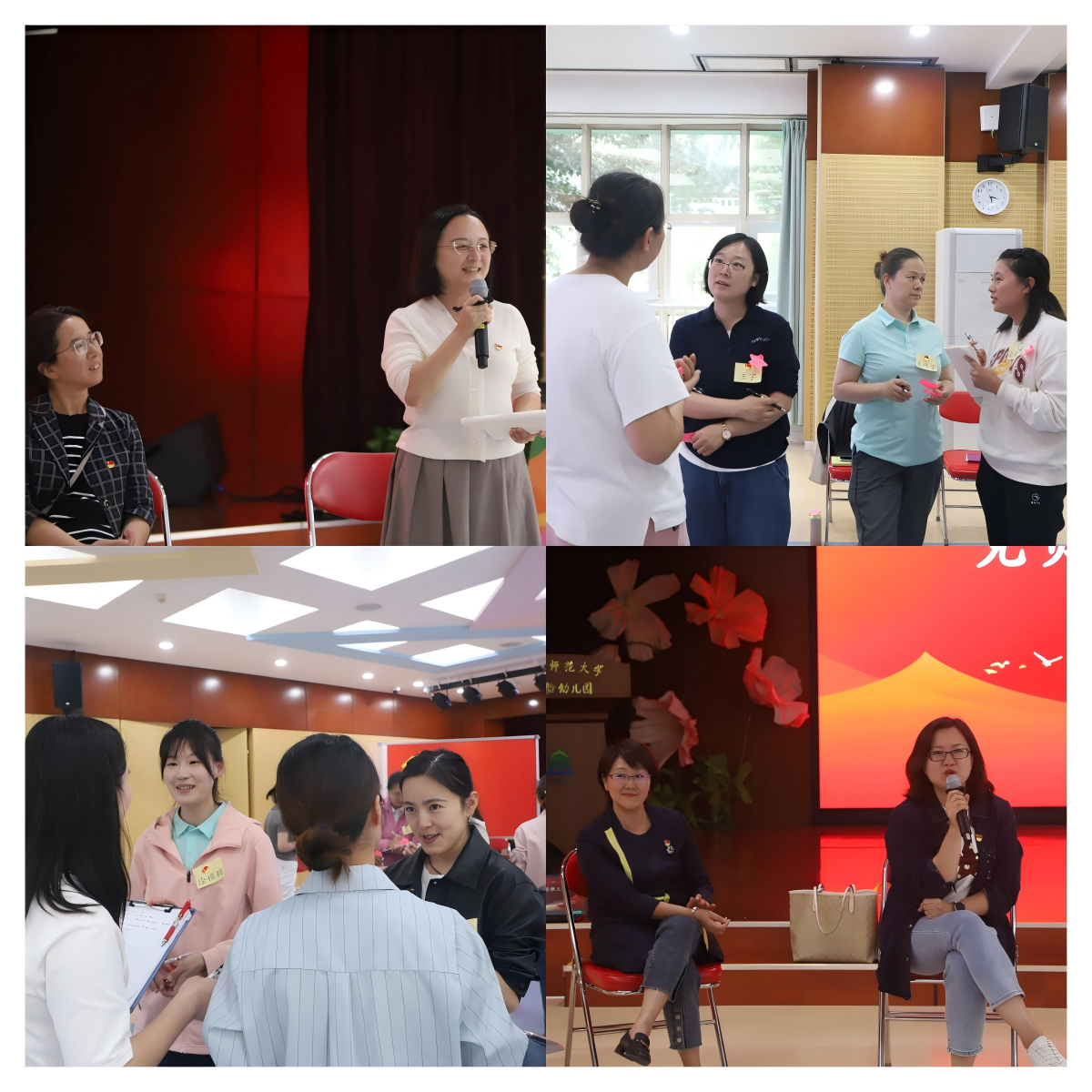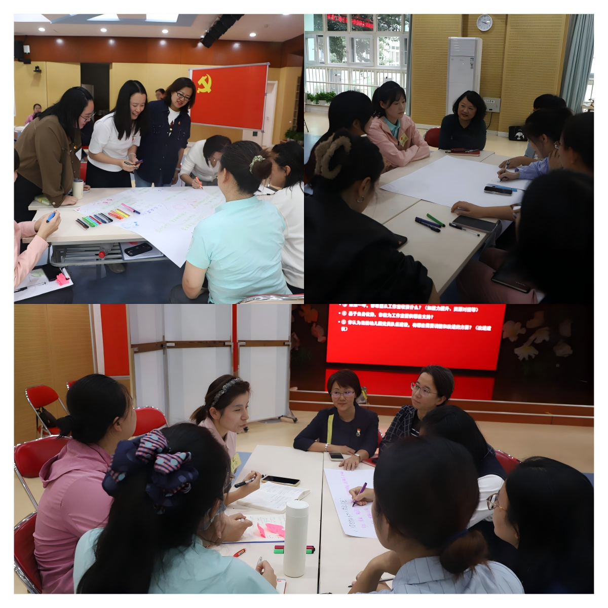 “坦诚心声”研讨环节为活动核心。导师深入各组,与成员围绕“工作室加入初心”“党员教师担当”“年度成长目标”“共建支持方向”“党员队伍建设建议”等议题深度交流,现场思维碰撞激烈,为工作室发展收集诸多建设性意见。最后,“幸福树小组”“硕果累累小组”“星光闪耀小组”依次登台,结合研讨成果,从党建引领专业发展、党员使命践行、工作室建设方向等维度总结,既诠释入党初心,也探索党建与幼教融合路径,彰显党员教师责任担当。