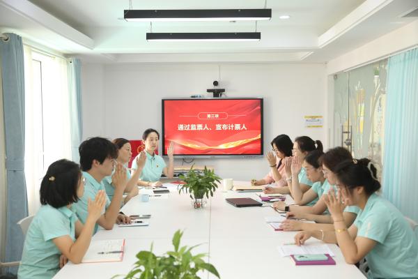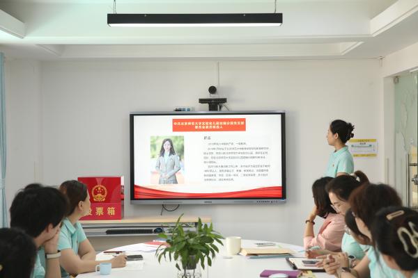 9月25日,中共北师大实验幼儿园龙樾分园党支部成立大会暨第一届支部委员会选举大会在龙樾分园会议室举行。大会严格遵循《中国共产党章程》、《中国共产党基层组织选举工作条例》开展,应到会具有表决权的正式党员10人,实到会9人,符合选举有效人数规定。