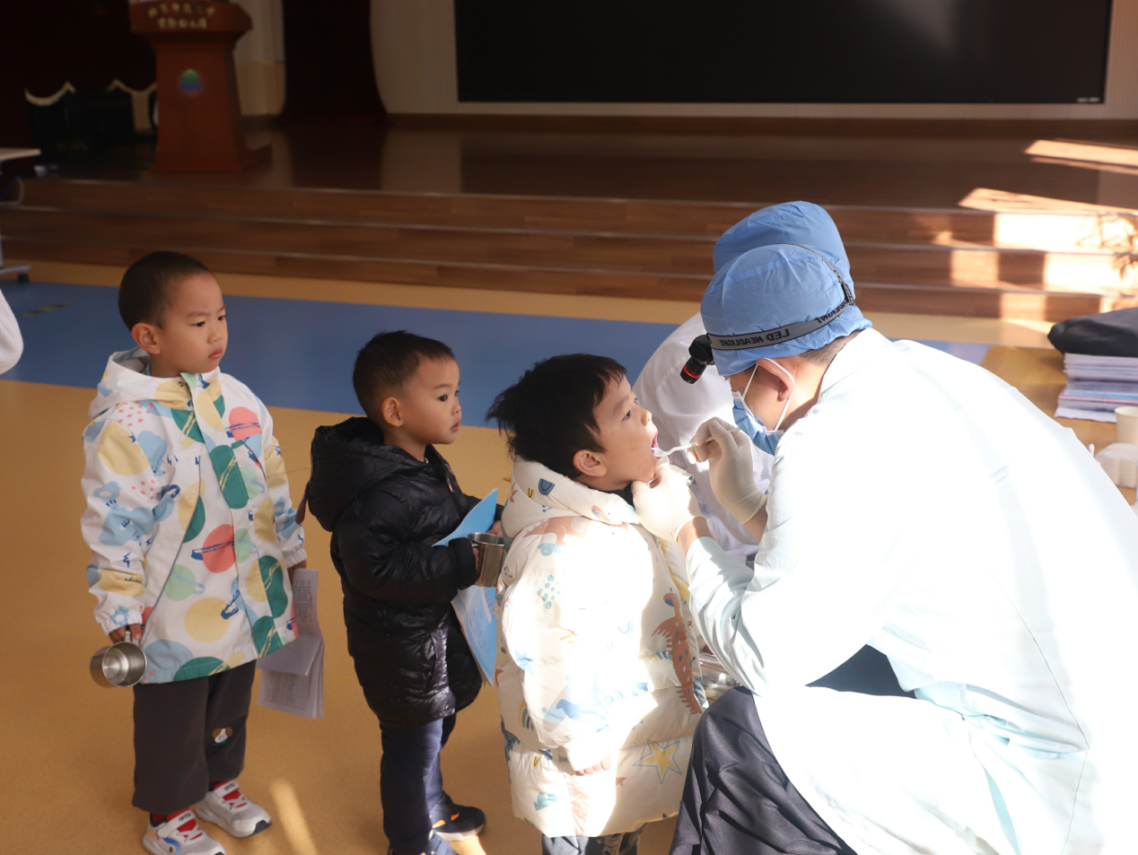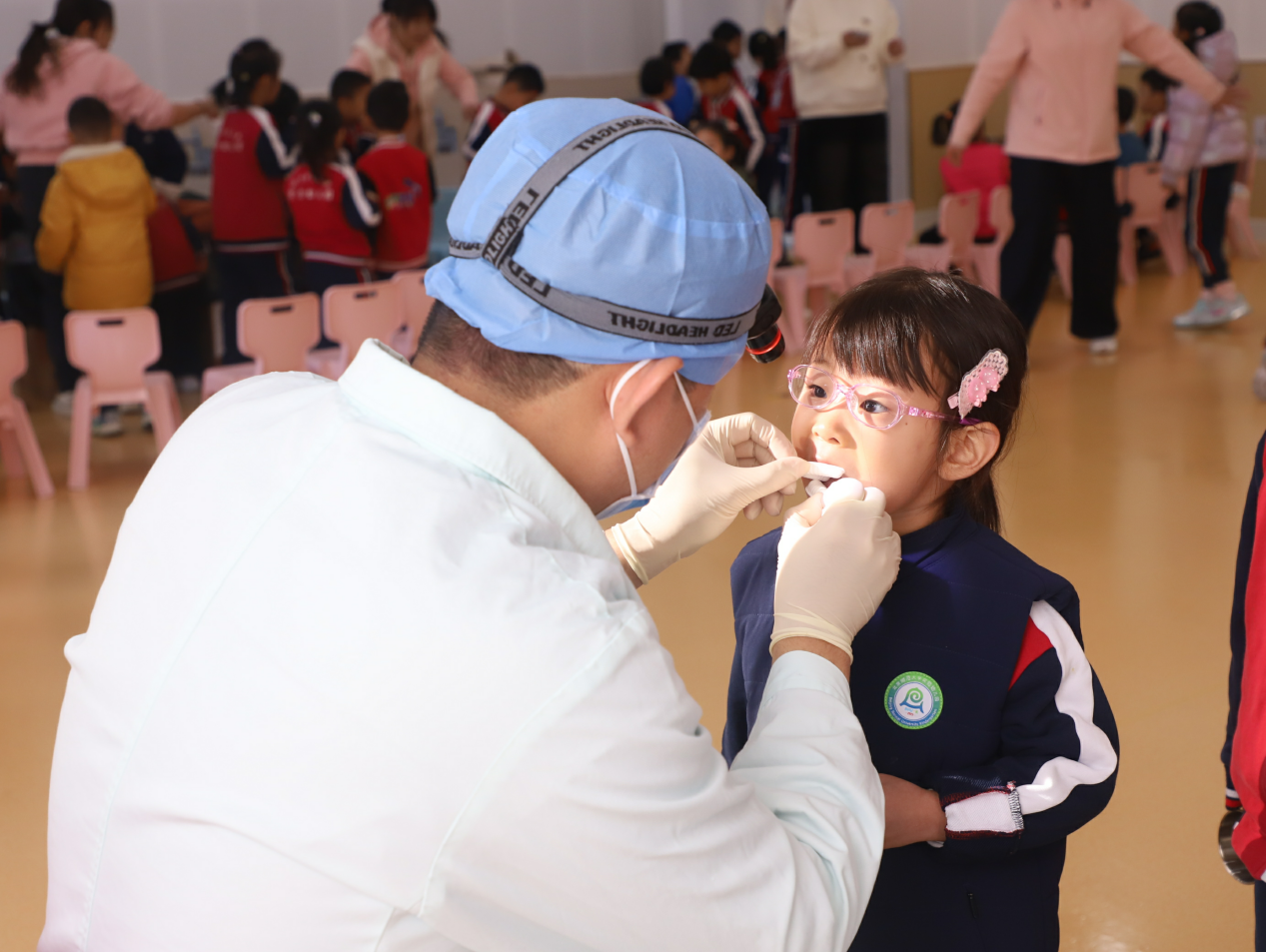 2025年10月21日由海淀区妇幼保健院口腔科医生来园为全园幼儿开展免费涂氟护齿、新生免费口腔检查服务,用专业守护孩子们的“小小牙齿”,筑牢口腔健康第一道防线。检查前保健医对全园幼儿进行了检查要求及爱牙宣教,帮助幼儿熟悉流程,缓解紧张情绪。检查当天班级教师、保健医、口腔医生密切配合,秩序井然地完成了135名幼儿查牙、314名幼儿的涂氟工作。