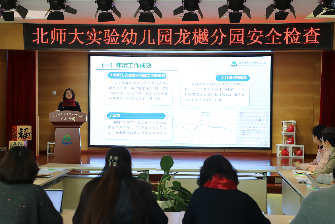 针对本次检查情况,北师大实验幼儿园党委书记杜军做总结发言。她强调,安全是教育工作的底线与红线,必须以“时时放心不下”的责任感狠抓制度落地落实。下一步,我园将全面梳理检查结果,形成专项报告、问题整改清单及“回头看”台账,构建整改闭环。重点聚焦共性问题,强化消防设施定期维护、规范消防通道管理、完善监控系统校准机制、加强保安队伍系统化培训、优化厨房标准化操作流程,持续夯实重点区域安全管控。我园将以此次检查为契机,进一步压实“一岗双责”,推动安全管理从源头防控向精准治理深化,切实把安全工作抓细抓实抓到位,为全体师幼营造平安和谐稳定的校园环境。