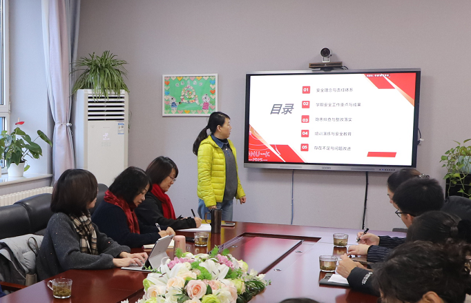 校本部园后勤主任王颖做安全工作汇报