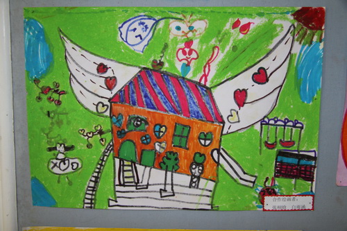 彩色纸浆画“幼儿园的楼房”