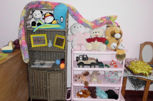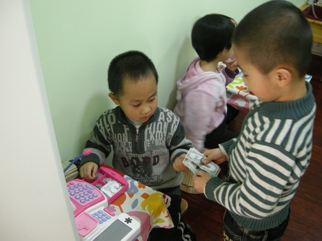 上学期抗震加固之后,日托中班的班级格局发生了变化。为了更加有效地利用空间,满足幼儿自主游戏的需要,各班为幼儿开辟了不同的角色游戏区,分别是“娃娃家”、“超市”、“餐厅”、“美发店”。