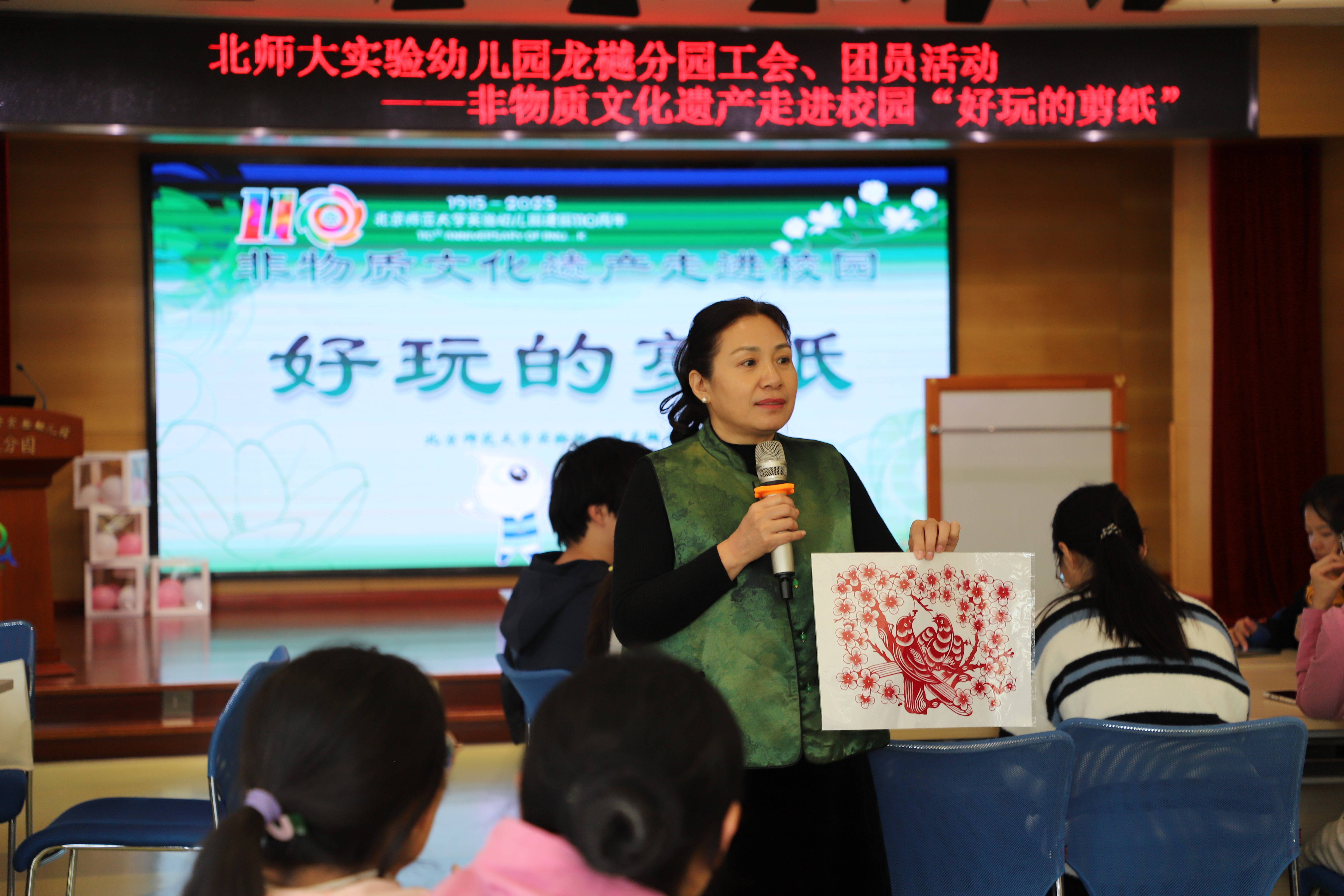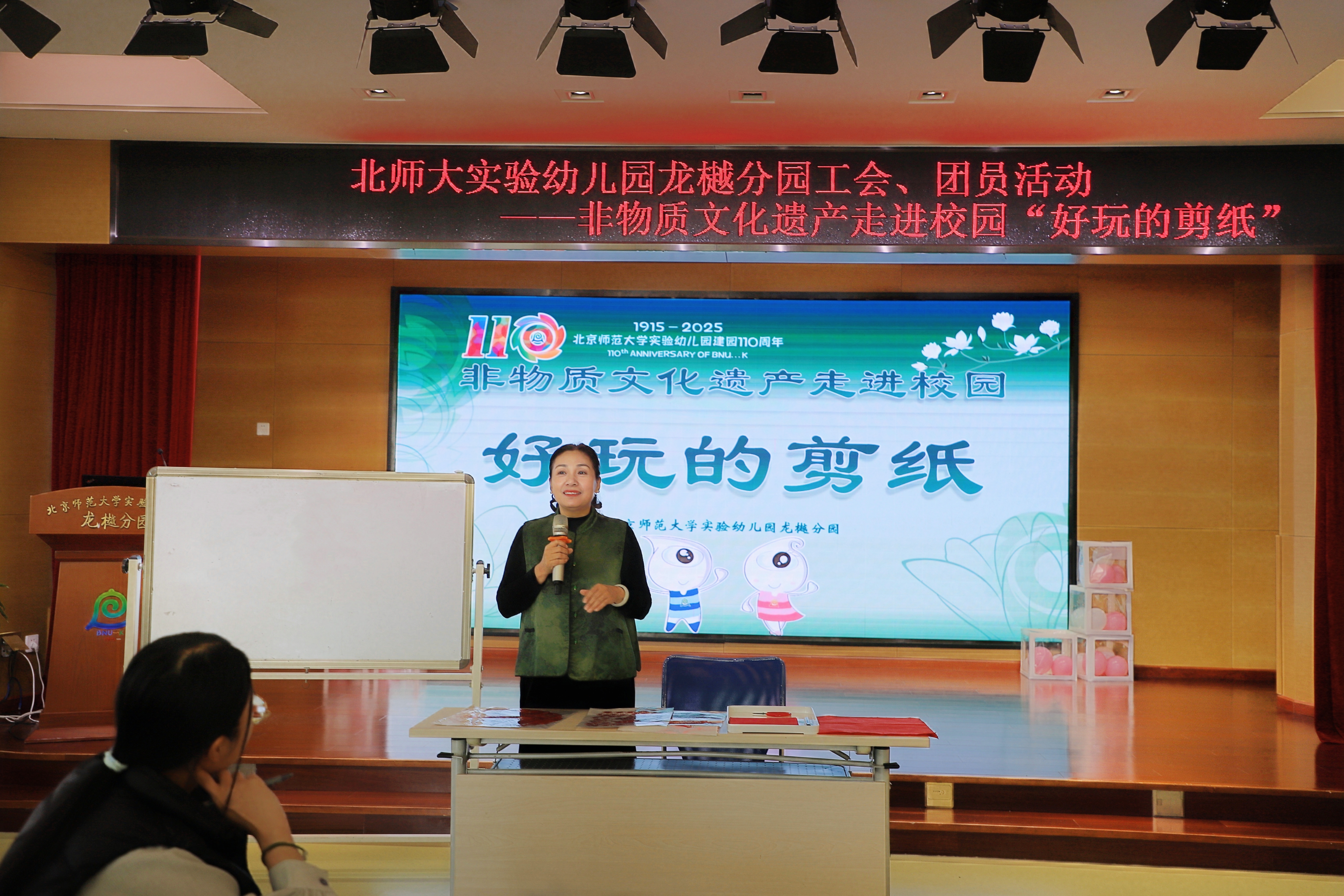 为弘扬中华优秀传统文化,丰富园所文化内涵,同时为即将开展的新年主题活动做好准备,11月下旬,北师大实验幼儿园龙樾分园联合西三旗区学区,特邀国家级非物质文化遗产剪纸传承人、资深民间剪纸艺人刘平老师入园,为全体教师带来了一场别开生面的民间剪纸培训。