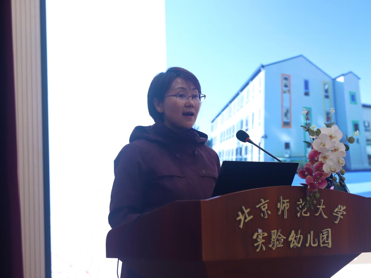 执行园长邱守以《以爱育美·美美与共——在美育实践中促进师幼协同发展》为题,分享了园所美育实践成果。结合对美育的思考,呈现了专业培训赋能教师、特色栏目营造氛围、环境创设浸润审美、课题研究深化实践的特色美育实践。