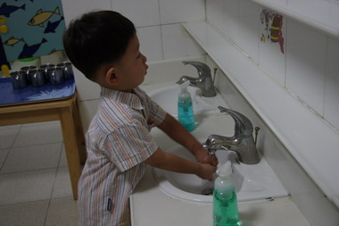 早晨进园自己洗手