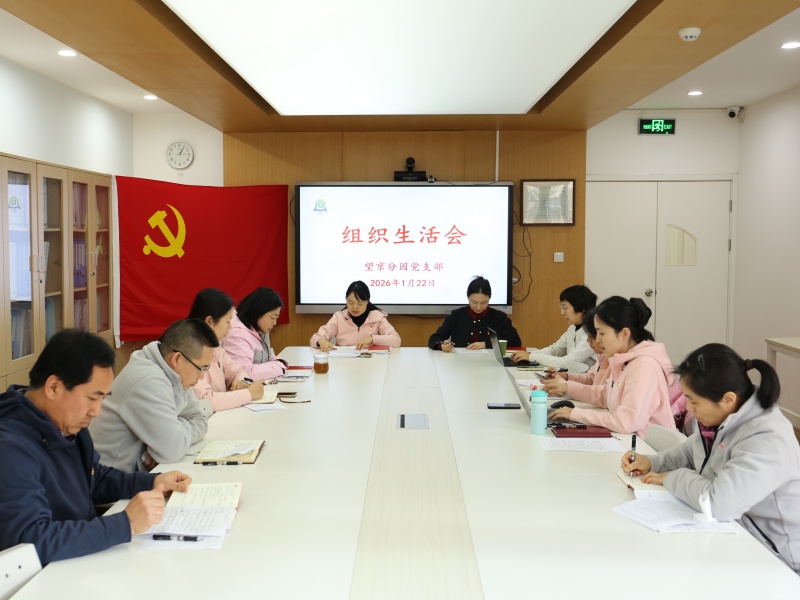 2026年1月22日,望京分园党支部在园内会议室召开组织生活会并开展民主评议党员工作。会议由党支部组织委员谢红玉主持,全体党员9人参会,集团党委委员鞠亮同志列席指导。