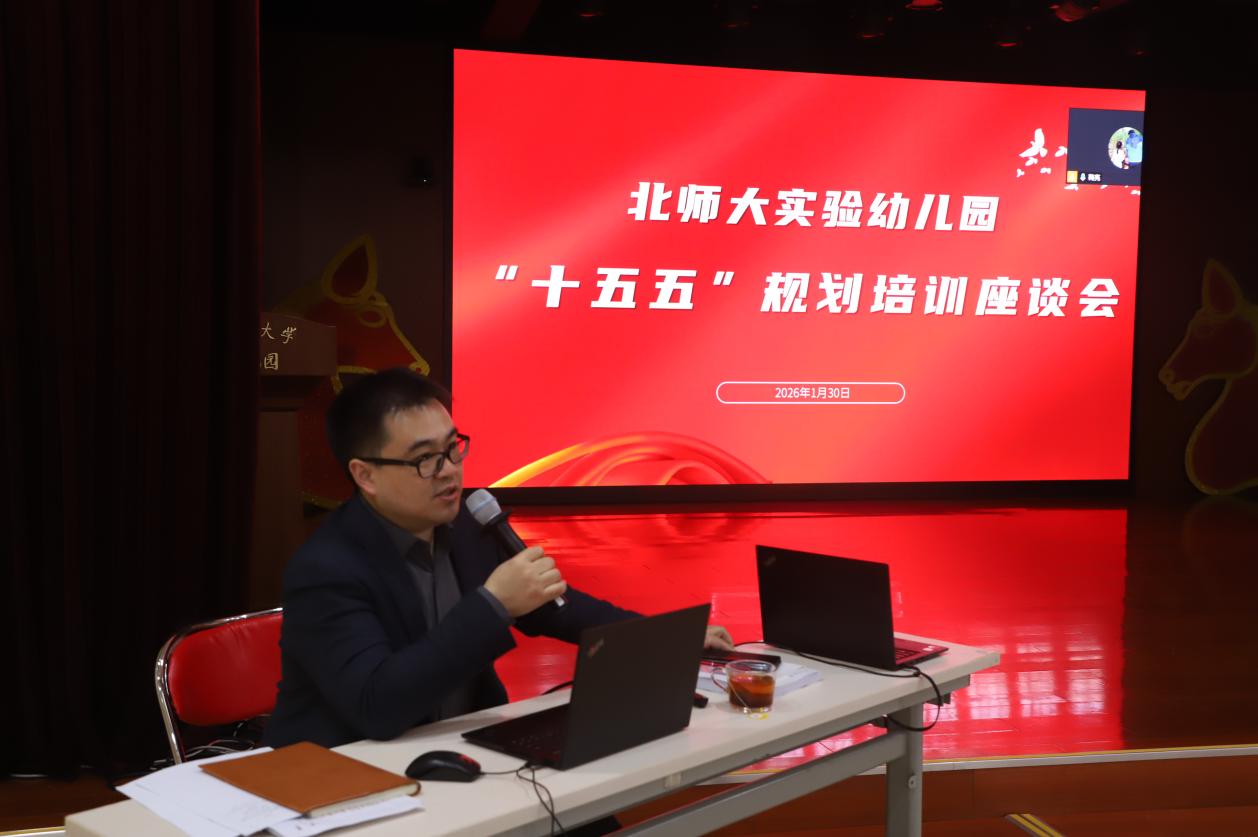 培训环节,杨增岽主任首先围绕国家“十五五”规划制定的宏观背景与战略意义进行解读,并结合北师大“十五五”规划编制的实践经验,针对幼儿园当前初步明确的“十五五”发展任务,提出了专业、可操作性的建议与指导;陈霄副主任从“十五五”规划的体系、内容结构以及幼儿园需重点关注的方向等方面,提供了系统而中肯的建议;于汪洋副处长则聚焦幼儿园如何主动对接大学整体发展规划、如何与大学相关部门、院系以及附属学校形成协同发展机制等问题,分享了具有前瞻性的思考与建议。