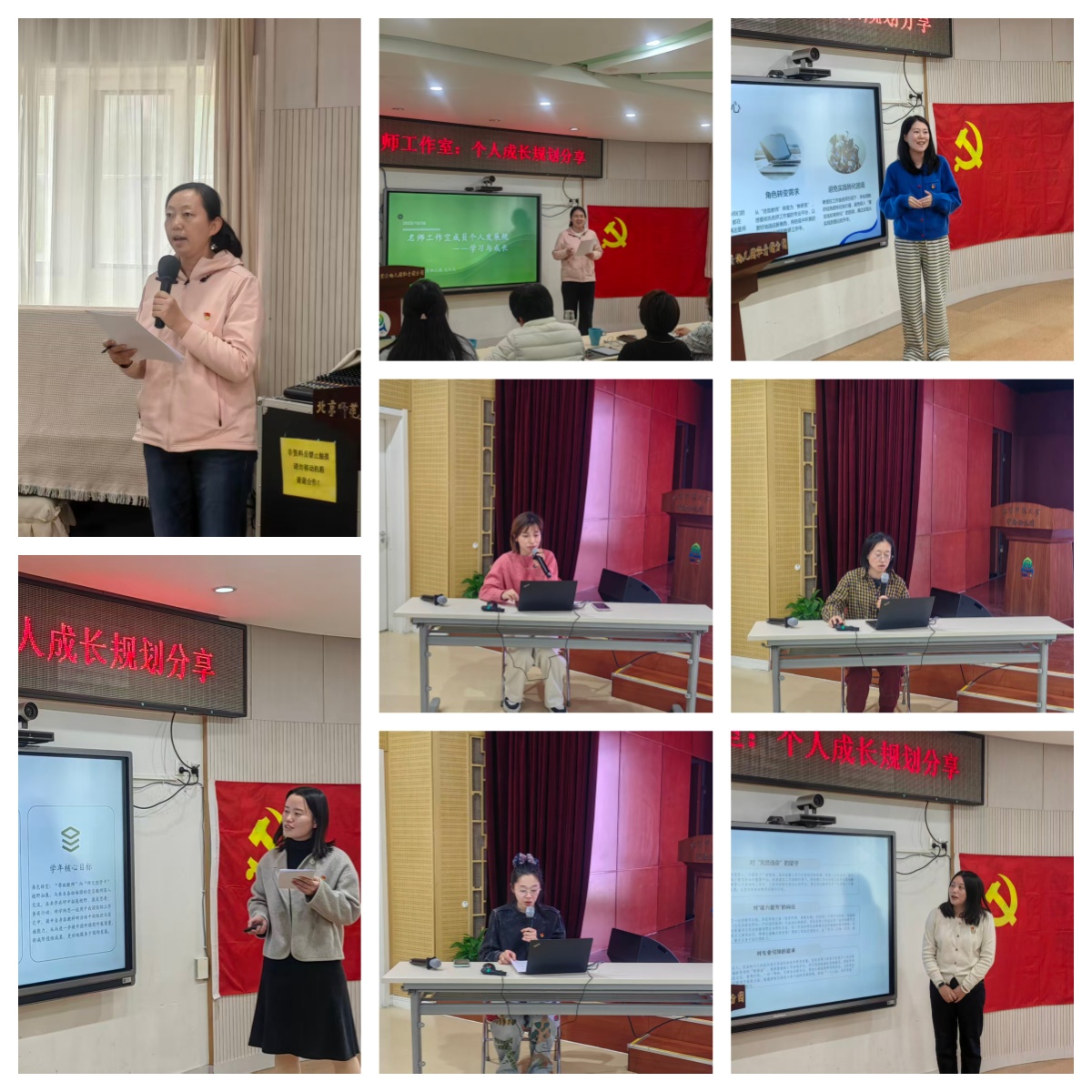 活动以“党建引领专业发展”为主线,通过教师自我剖析、导师精准点评、项目路径介绍等环节,明确成长方向,凝聚团队力量,为工作室后续实践与研究奠定坚实基础。活动中,20位工作室成员分两批从核心目标、党性修养、专业实践、综合能力等多维度进行个人规划阐述,既展示了自身在实践工作中的优势与经验,也坦诚剖析了在理论学习深度、科研成果转化等方面存在的不足,并制定了分学期可落地的目标与措施。