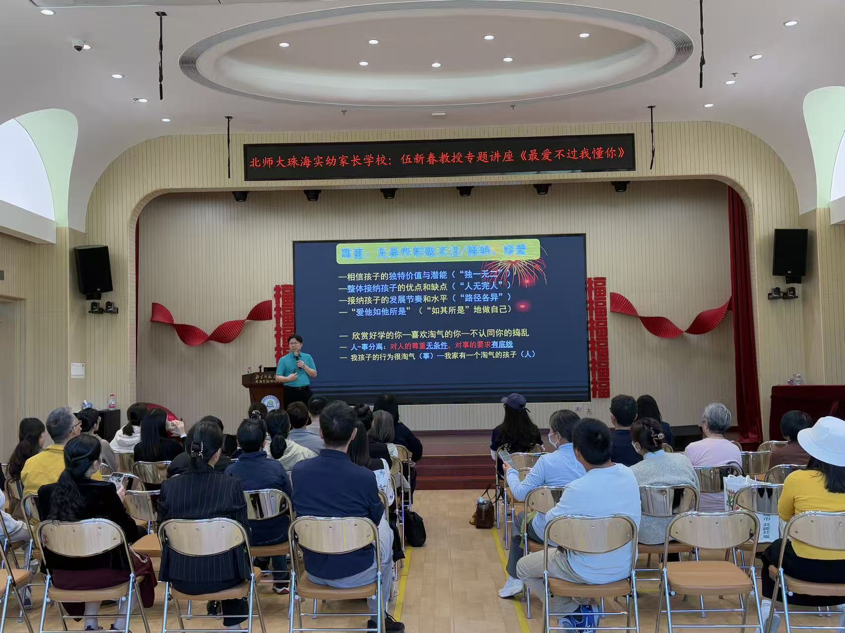 2025年12月19日,北京师范大学实验珠海幼儿园成功举办家长学校活动。本次活动特邀北京师范大学二级教授、心理学科学位委员会主任、文理学院心理系主任、博士生导师伍新春教授,为家长与教师们带来题为《最爱不过我懂你》的专题分享。