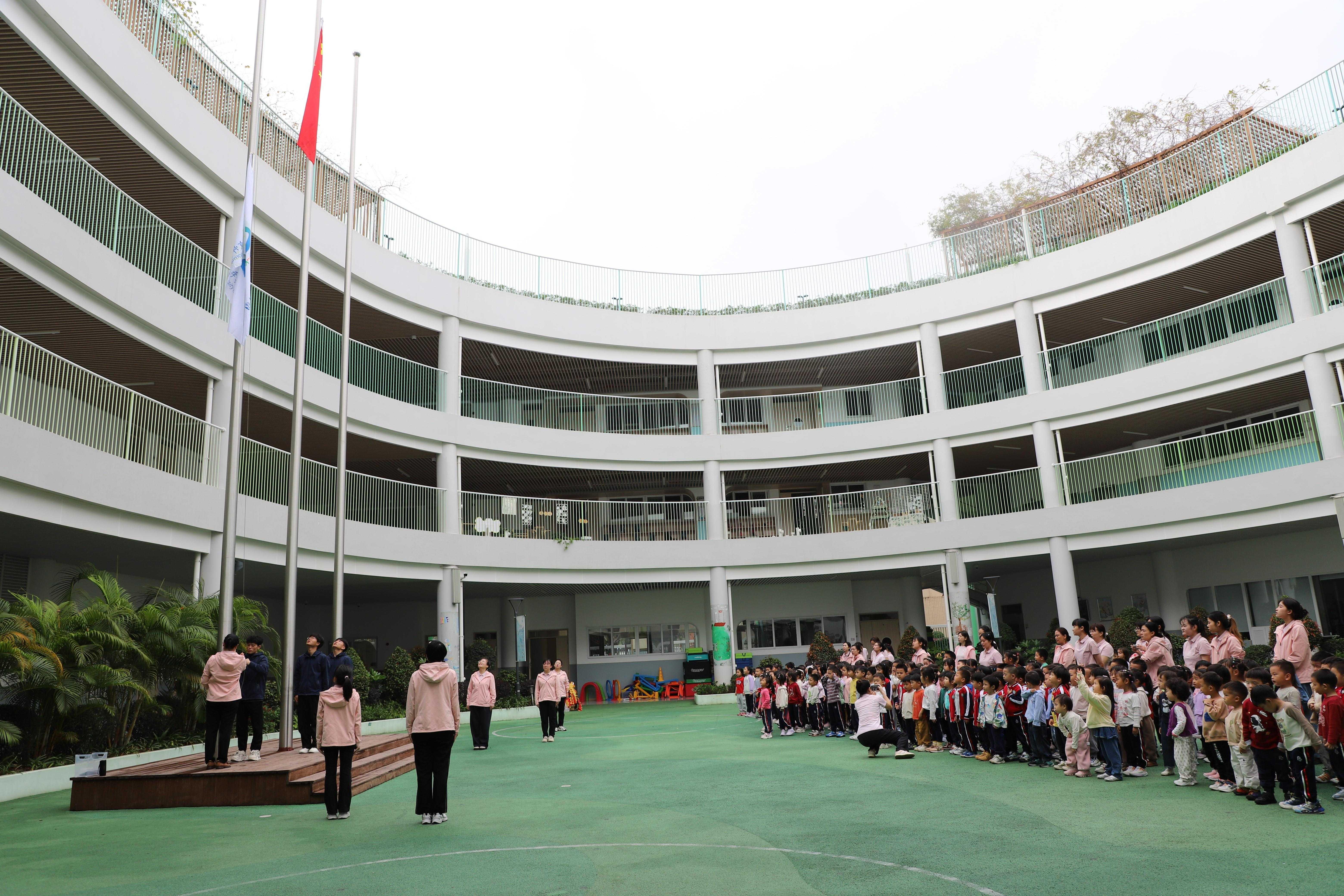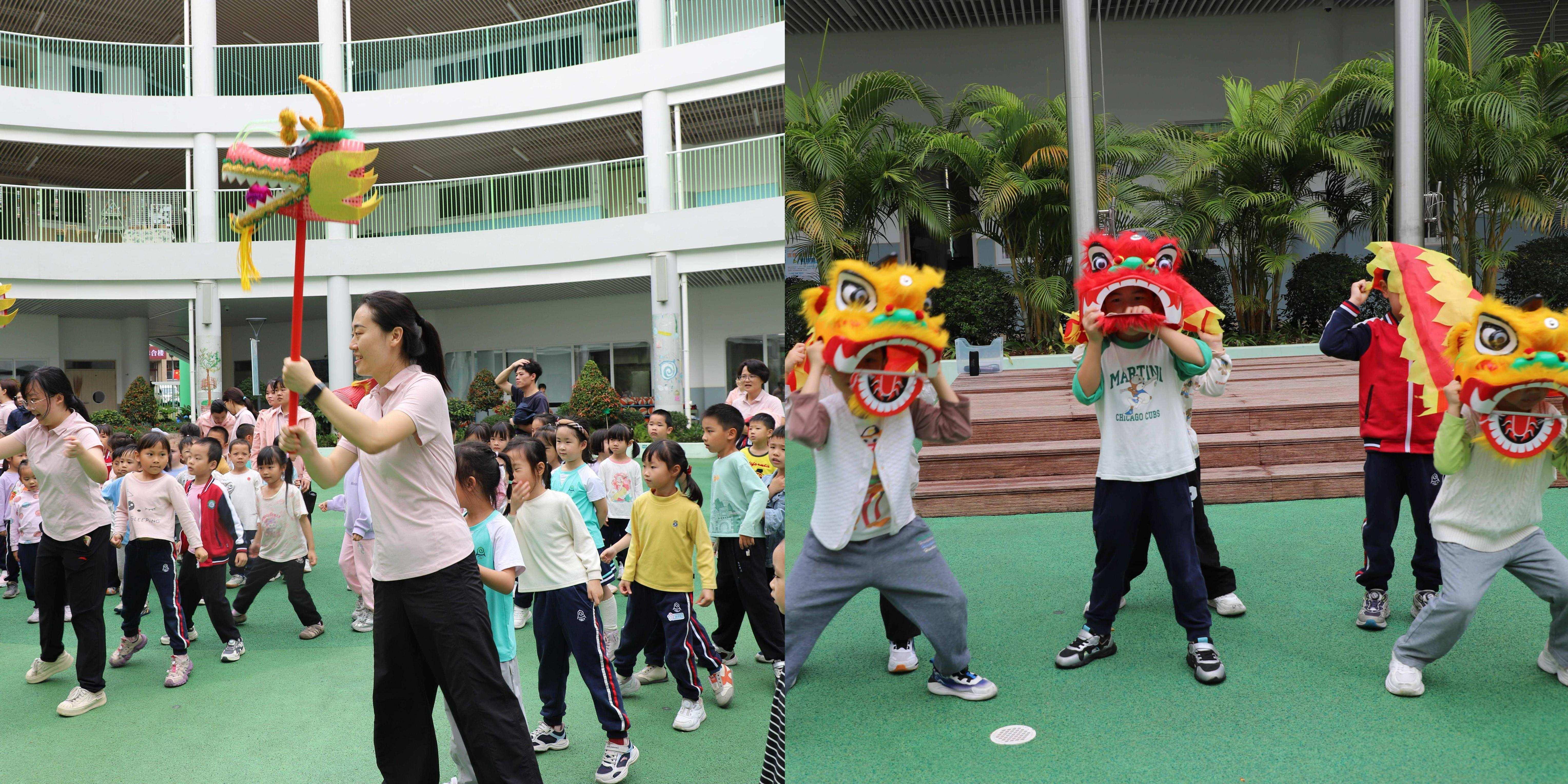 上午10点,全体师幼参加升旗仪式,大班孩子表演舞龙舞狮,郭美娟园长寄语孩子们勇敢探索、快乐成长。