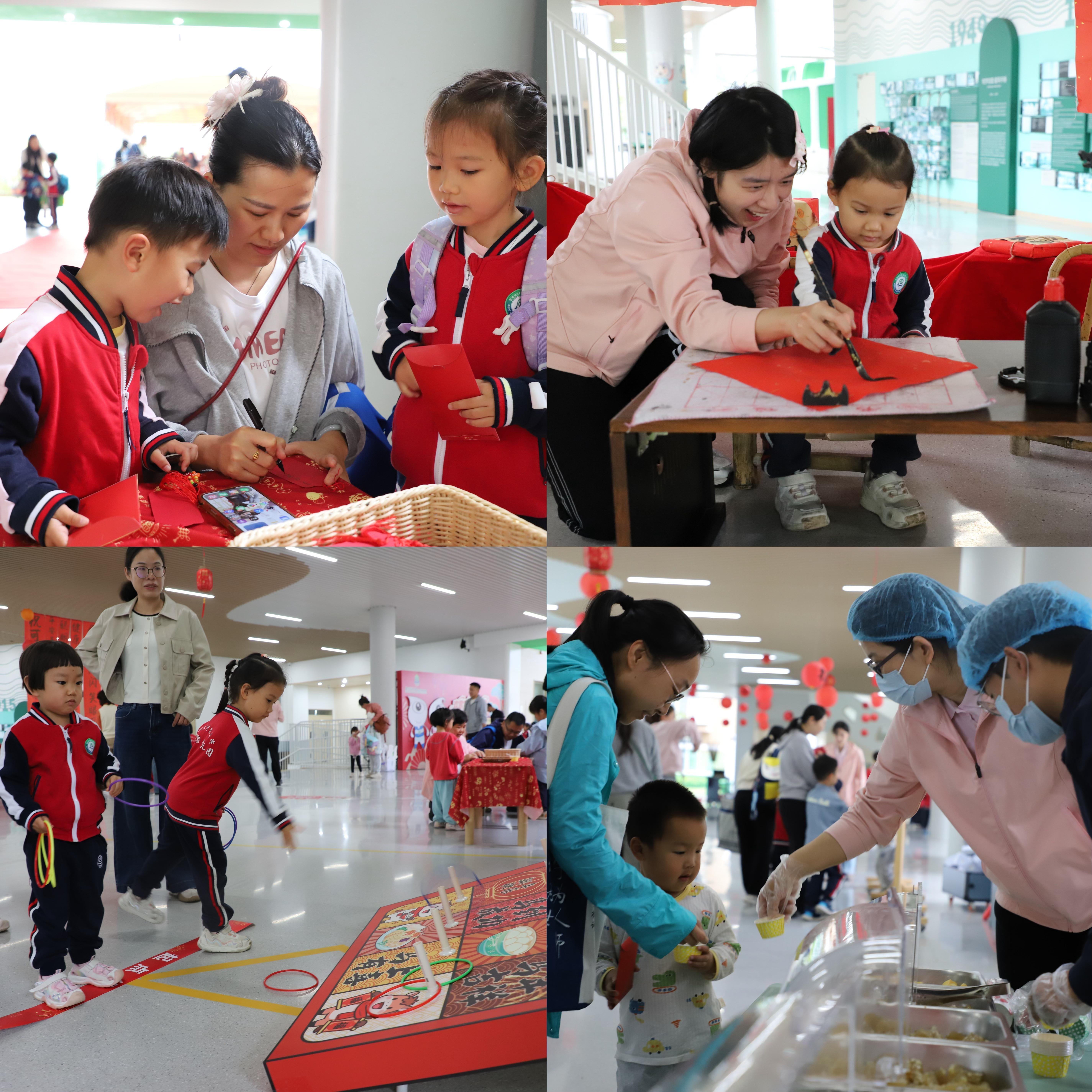 孩子们随后开展亲子游园活动,包括假期照片分享、心愿卡制作、写福字、品尝马蹄糕等,其中趣味游戏“马上圈福”“马跃新程”更是把现场的气氛推向高潮,让孩子们生动认识了广东过年的传统习俗,感受到幼儿园生活带来的快乐。
